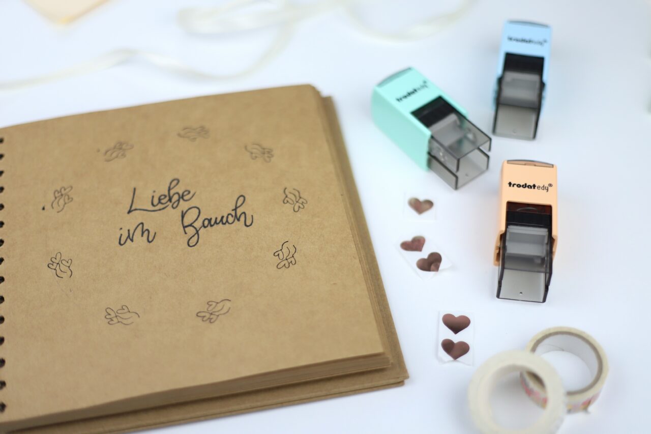 Die Schwangerschaft vergeht wie im Flug und so ist es auch wenn unser kleines Krümelchen endlich da ist. Da ich jede Minute mit unserem kleinen Wunder genießen möchte, habe ich mich dazu entschieden das Fotoalbum schon im Vorfeld zu gestalten. Natürlich könnte ich auch einfach ein gekauftes nehmen und die Augenblicke von unserem Krümel fest halten, aber mein DIY Blogger Herz möchte ein selbst gestaltetes Buch mit vielen Erinnerungen und Text! Umso mehr freue ich mich darüber, dass ich meine Stempel bei Trodat selbst gestalten konnte und nun das Babyalbum noch persönlicher wird! Ein Stempel mit meinem eigenen Lettering ist schon richtig cool oder nicht?